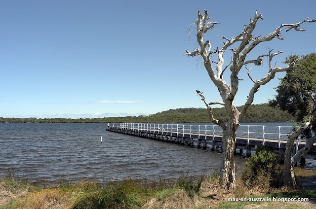 Après une nuit passée près de Peaceful Bay - très calme donc mais très venteux - nous prenons la route vers la ville de Denmark. On entre dans une série de paysage où la route s'étire sur des kilomètres et des kilomètres en ligne droite... c'est un peu la "spécialité" du Western Australia !!